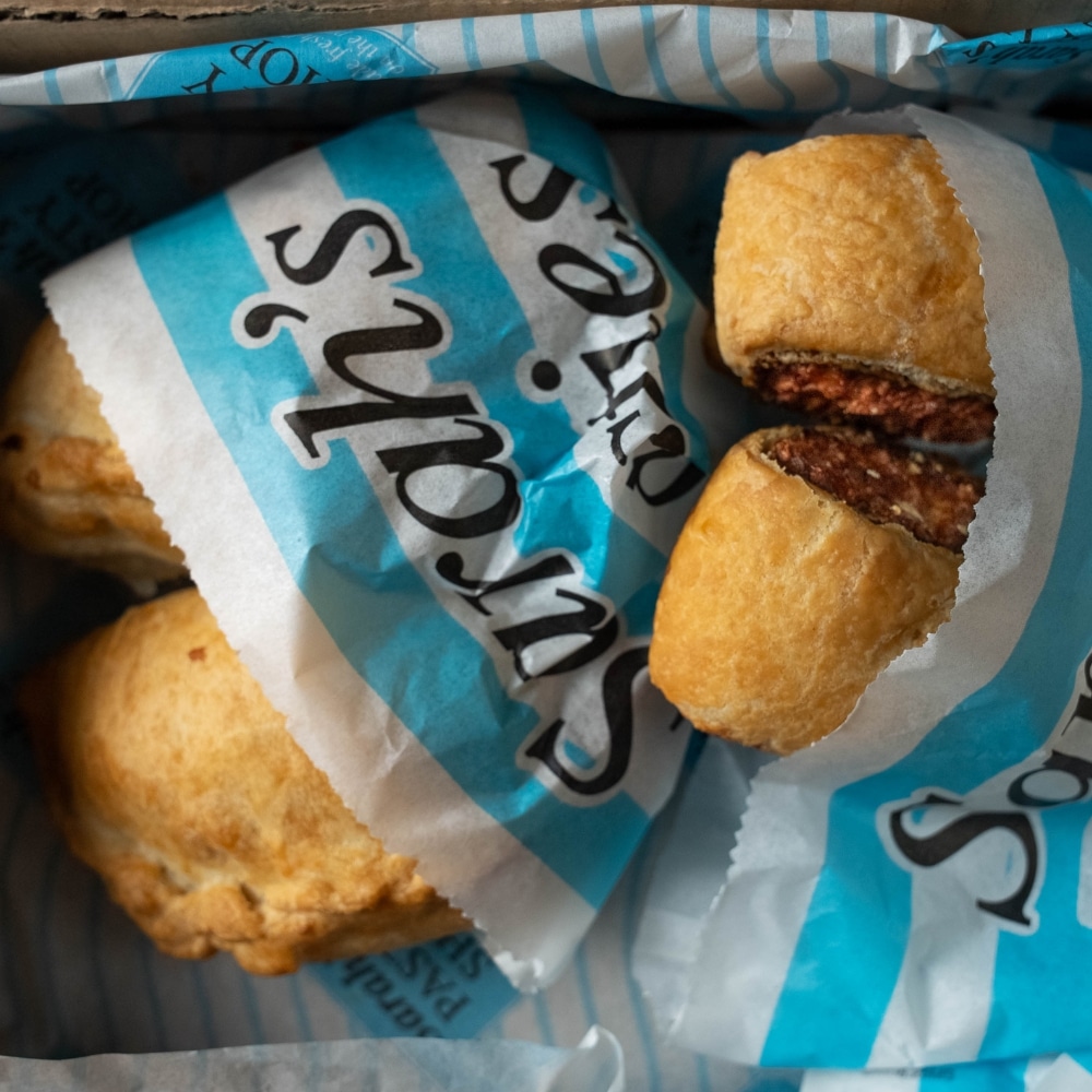 Each Traditional Cornish Cocktail Pasty is filled with tender beef, potato, swede, and onion, all wrapped in our signature shortcrust pastry and hand-crimped for an authentic finish. The Cocktail Sausage Rolls are made with seasoned British sausage meat, wrapped in crisp, flaky pastry for that perfect golden crunch.